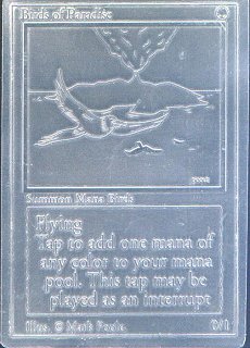 | BIRDS OF PARADISE G Summon Mana Birds (0/1) Flying Tap to add one mana of any color to your mana pool. This tap may be played as an interrupt. |