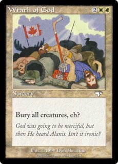 WRATH OF GOD 2WW Sorcery Bury all creatures, eh? God was going to be merciful, but then He heard Alanis. Isn't it ironic? |