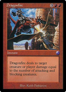 | DRAGONFIRE 3RR Instant Dragonfire deals to target creature or player damage equal to the number of attacking and blocking creatures. |